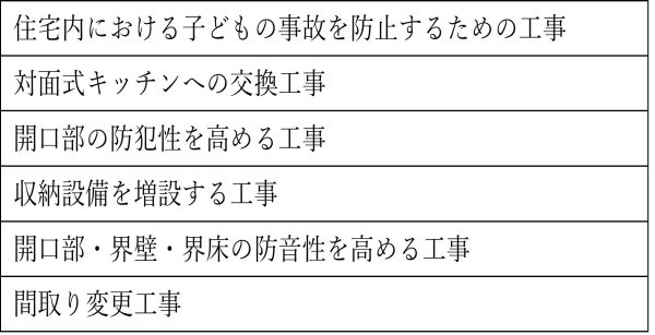 ①40歳未満であって配偶者を有する者 ②40歳以上であって40歳未満の配偶者を有する者 ③19歳未満の扶養親族を有する者、のいずれかに該当する者が行った以下の工事
